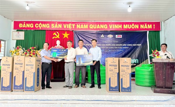 Doanh nghiệp tặng máy xử lý nước, bình chứa nước cho xã cù lao xứ...