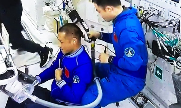 VOVVN - VOV.VN - Các phi hành gia Trung Quốc tiến hành cắt tóc, gội đầu bằng các thiết bị hết sức đặc biệt trên Trạm vũ trụ Thiên Cung (Tiangong).