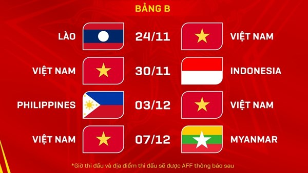 VOVVN - VOV.VN - Lịch thi đấu ASEAN Cup 2024 của ĐT Việt Nam, thầy trò HLV Kim Sang Sik có lịch thi đấu thuận lợi.