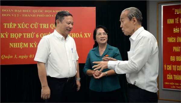 VOV1 - Tại buổi tiếp xúc cử tri Quận 3 trước kỳ họp thứ 6 Quốc hội khóa XV của Đoàn Đại biểu Quốc hội TPHCM- đơn vị 2, nhiều cử tri ý kiến về công tác...