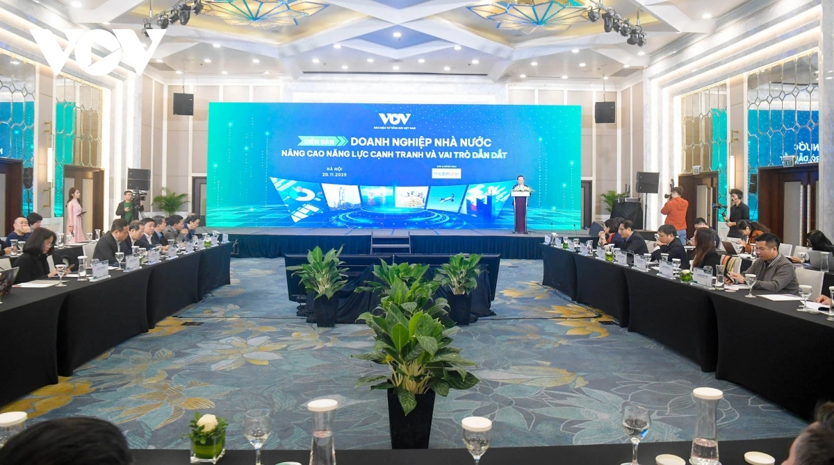VOV.VN - Sáng 20/11, tại Hà Nội, Báo Điện tử Tiếng nói Việt Nam (VOV) phối hợp với các đơn vị liên quan tổ chức diễn đàn kinh tế với chủ đề "Doanh nghiệp Nhà nước: Nâng cao năng lực cạnh tranh và vai trò dẫn dắt".
