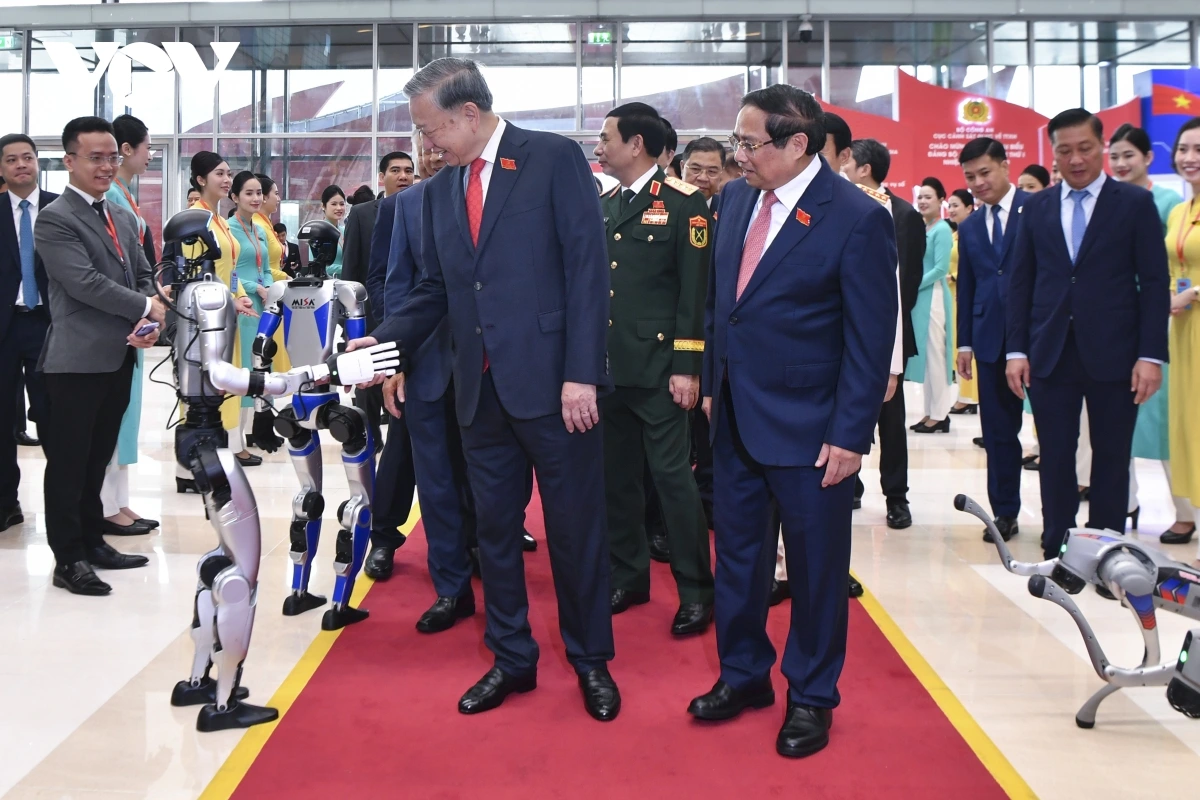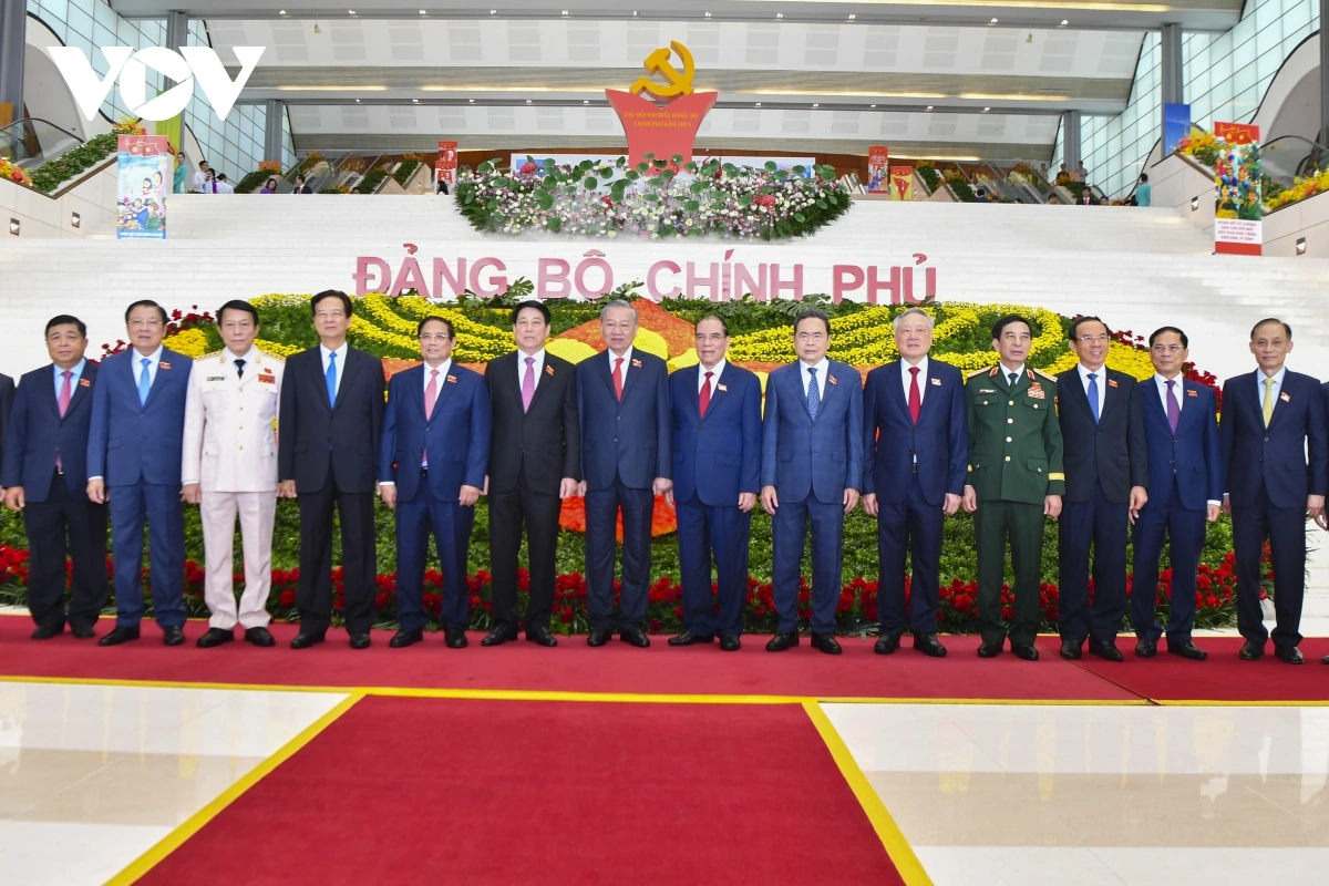 Tổng Bí thư Tô Lâm, Thủ tướng Phạm Minh Chính cùng các lãnh đạo, nguyên lãnh đạo Đảng, Nhà nước tham quan triển lãm chào mừng tại Đại hội Đảng bộ Chính phủ.