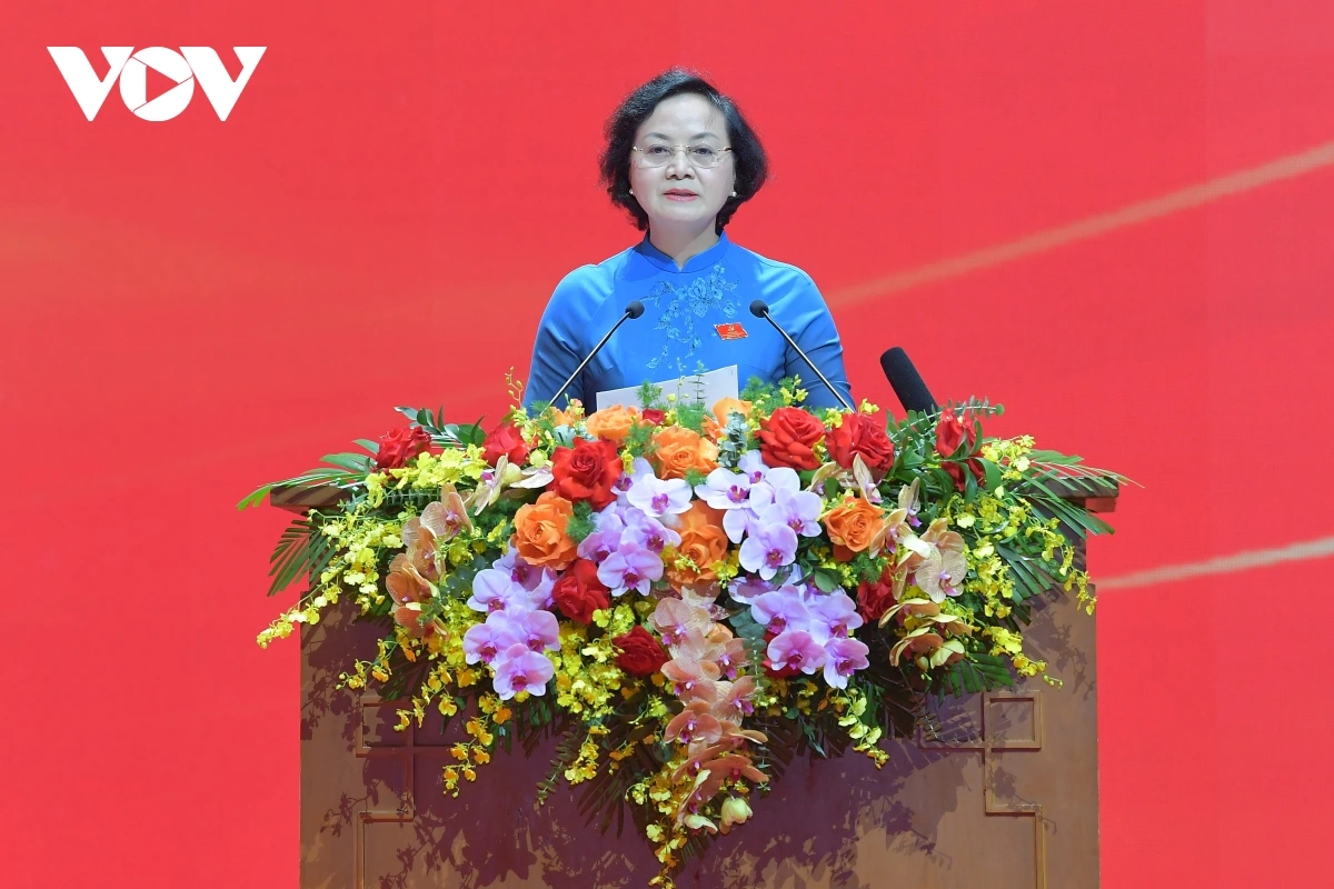 Bộ trưởng Bộ Nội vụ Phạm Thị Thanh Trà trình bày Chương trình làm việc của đại hội.