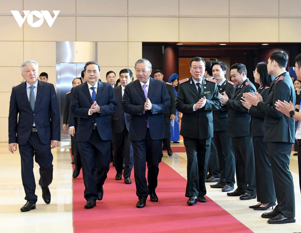 Cùng dự có Chủ tịch Quốc hội Trần Thanh Mẫn, các Ủy viên Bộ Chính trị, Phó Thủ tướng thường trực Nguyễn Hòa Bình; Đại tướng Phan Văn Giang, Bộ trưởng Bộ Quốc phòng; Đại tướng Lương Tam Quang, Bộ trưởng Bộ Công an; các Bí thư Trung ương Đảng, Ủy viên Trung ương Đảng và lãnh đạo các ban, Bộ ngành Trung ương và địa phương.