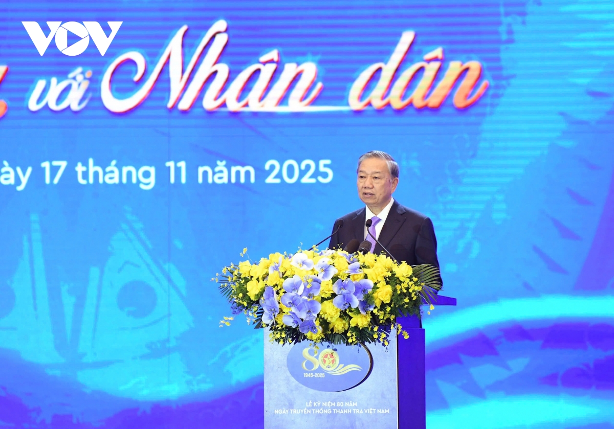 VOV.VN - Sáng 17/11, tại Hà Nội, Thanh tra Chính phủ tổ chức Lễ kỷ niệm 80 năm Ngày truyền thống Thanh tra Việt Nam (23/11/1945- 23/11/2025). Tổng Bí thư Tô Lâm tới dự và phát biểu tại buổi lễ.