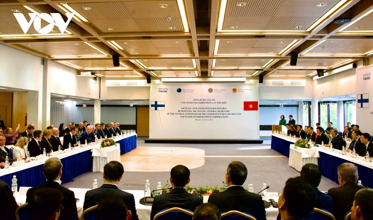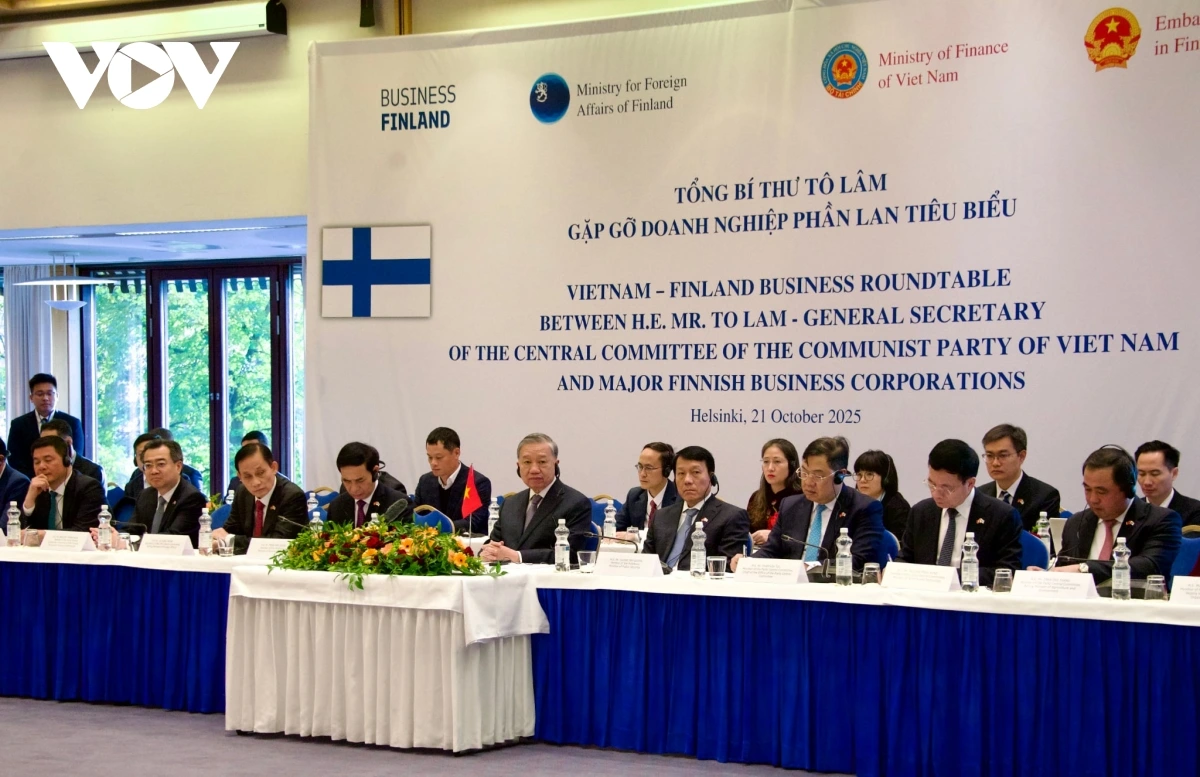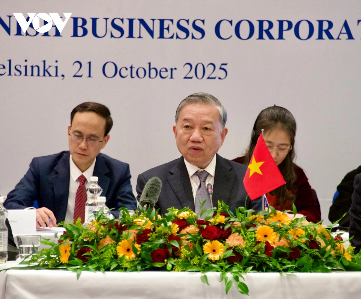 VOV.VN - Tiếp tục các hoạt động trong khuôn khổ chương trình thăm chính thức Phần Lan, chiều 21/10 (theo giờ địa phương), Tổng Bí thư Tô Lâm tới dự và chủ trì buổi gặp gỡ các doanh nghiệp Phần Lan tiêu biểu.