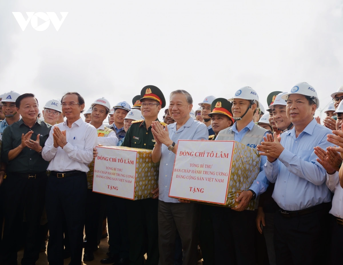 Phát biểu kết luận buổi làm việc, Tổng Bí thư Tô Lâm biểu dương các bộ, ngành địa phương liên quan đã có nhiều cố gắng vượt bậc bước đầu để đảm bảo dự án đúng tiến độ, trong đó, đường cất hạ cánh và tuyến giao thông số 1 hoàn thành đủ điều kiện bay kỹ thuật và nhà ga đã đạt trên 60% giá trị hợp đồng cơ bản hoàn thành trước ngày 19/12/2025. Dự án đã bước đầu chứng minh được hiệu quả tài chính và năng lực tự chủ của doanh nghiệp Việt Nam, tiết kiệm được gần 450 tỷ đồng cho Nhà nước.