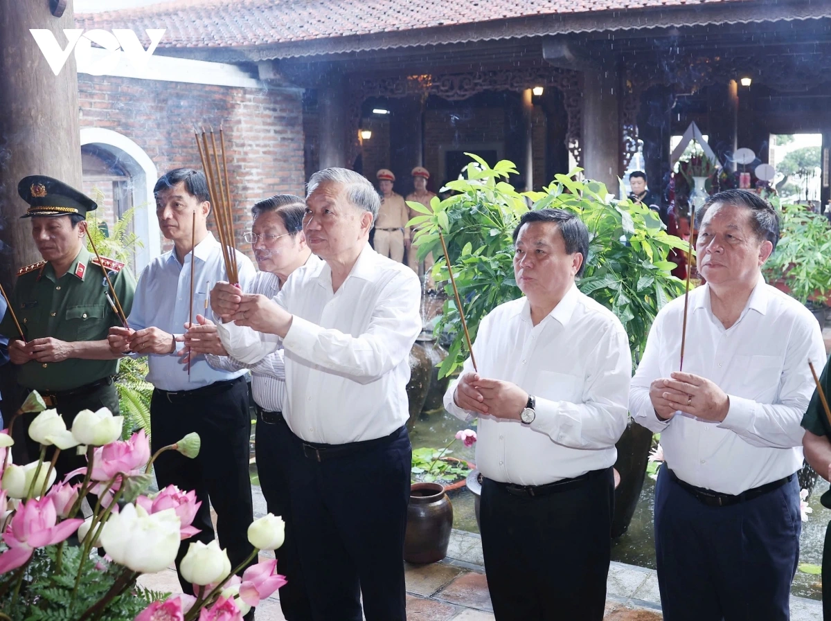 Tổng Bí thư Tô Lâm và Đoàn công tác của Trung ương đã đến Đền Chung Sơn - Đền thờ Gia tiên Chủ tịch Hồ Chí Minh thành kính dâng hoa, dâng hương, tưởng niệm bày tỏ lòng biết ơn sâu sắc đối với song thân phụ mẫu Chủ tịch Hồ Chí Minh và những người thân yêu trong gia đình của Người.