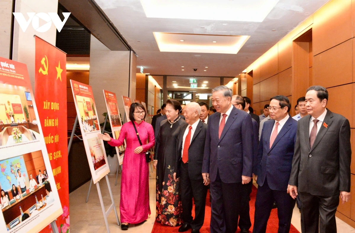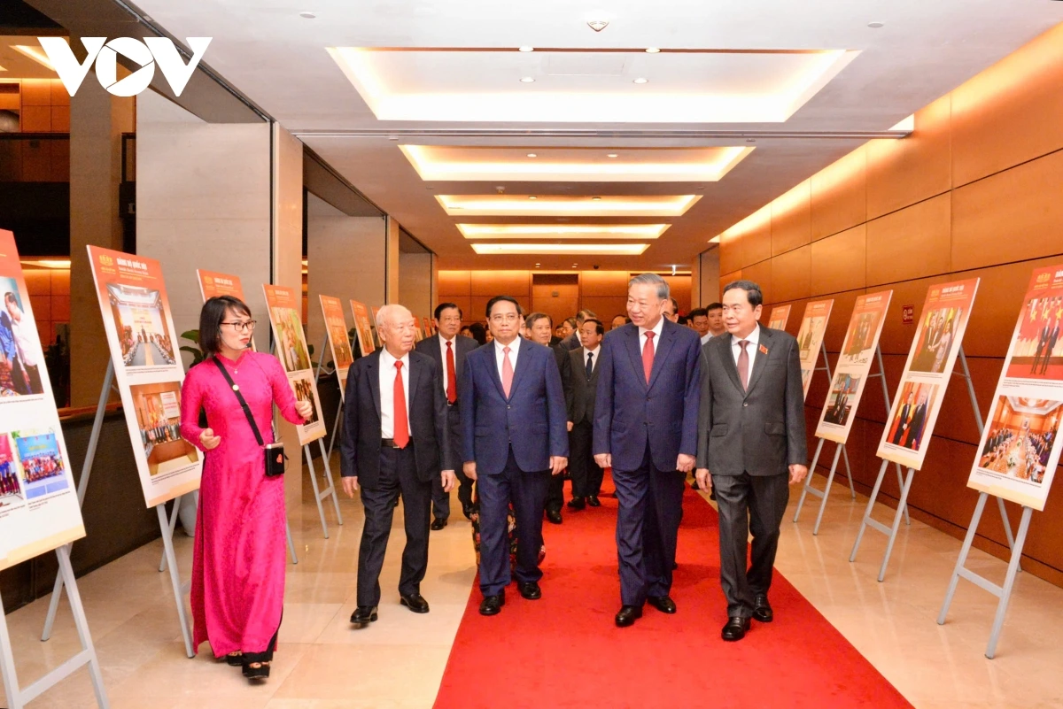 Tổng Bí thư Tô Lâm cùng lãnh đạo, nguyên lãnh đạo Đảng, Nhà nước tham quan trưng bày tại Nhà Quốc hội