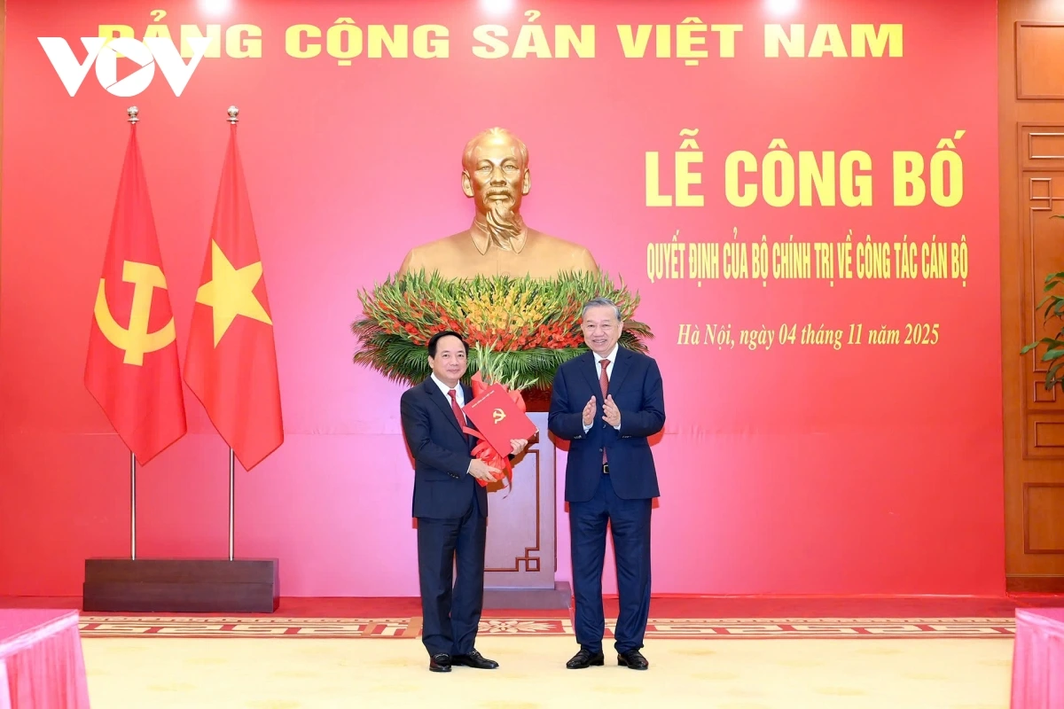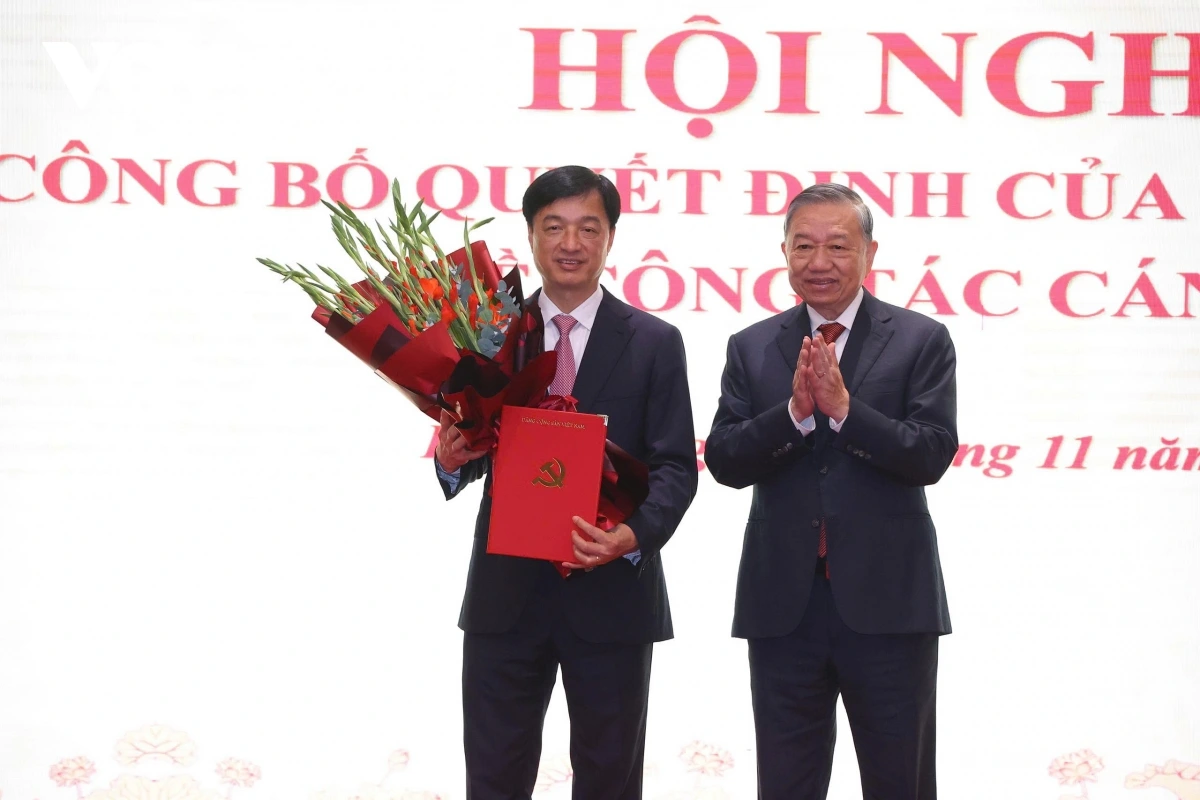 Tiếp đó, tại trụ sở Trung ương Đảng, Tổng Bí thư Tô Lâm đã trao Quyết định của Bộ Chính trị điều động Đại tướng Trịnh Văn Quyết, Bí thư trung ương Đảng, Chủ nhiệm Tổng cục Chính trị Quân đội Nhân dân Việt Nam đảm nhiệm chức vụ Trưởng Ban Tuyên giáo và Dân vận Trung ương; trao Quyết định của Bộ Chính trị chỉ định phân công ông Lê Minh Trí, Bí thư Trung ương Đảng, Chánh án Toà án nhân dân Tối cao đảm nhiệm chức vụ Phó Trưởng Ban thường trực Ban Nội chính Trung ương.