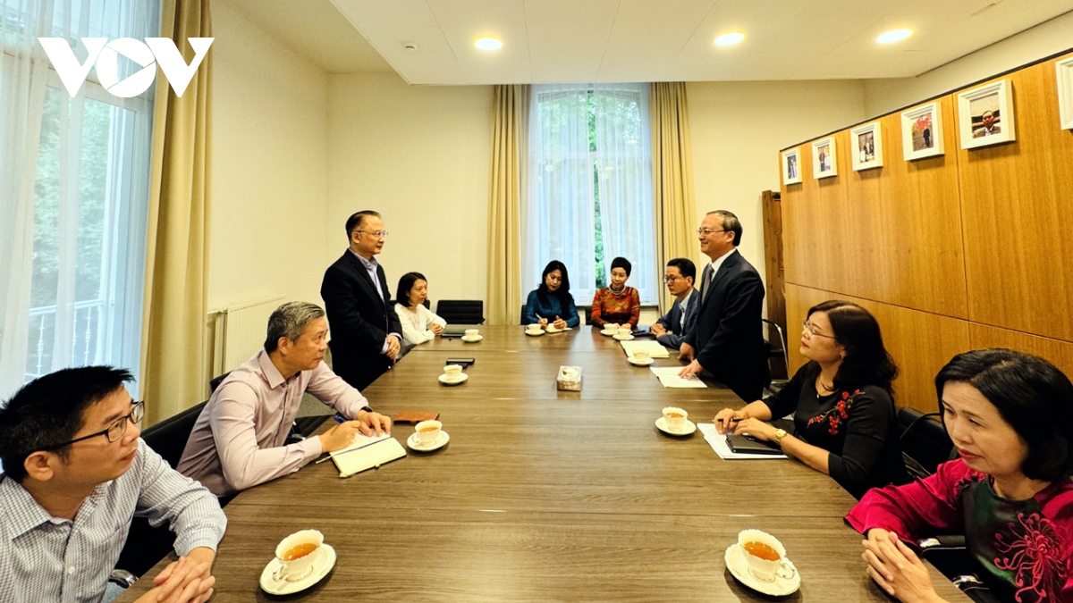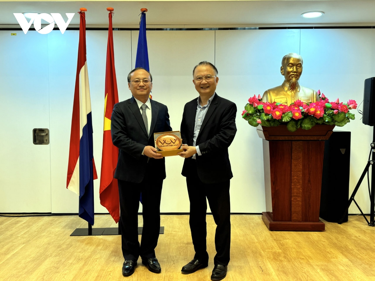 Trước đó sáng 15/8 (theo giờ địa phương), Tổng Giám đốc VOV Đỗ Tiến Sỹ đã gặp và làm việc với Đại sứ đặc mệnh toàn quyền Việt Nam tại Vương quốc Hà Lan - ông Ngô Hướng Nam. Bày tỏ sự vui mừng khi thấy những phát triển tốt đẹp trong quan hệ Việt Nam – Hà Lan thời gian gần đây, Tổng Giám đốc VOV Đỗ Tiến Sỹ nhấn mạnh VOV đã trở thành cơ quan truyền thông chủ lực quốc gia, đưa tin về các hoạt động giữa lãnh đạo hai nước Việt Nam và Hà Lan, đồng thời đề xuất Đại sứ quán tăng cường hợp tác và tiếp tục có những thông tin và hình ảnh về đất nước, con người và sự phát triển của Hà Lan để VOV có thêm tư liệu tuyên truyền trên các phương tiện truyền thông, đáp ứng nhu cầu của người dân ở trong và ngoài nước.