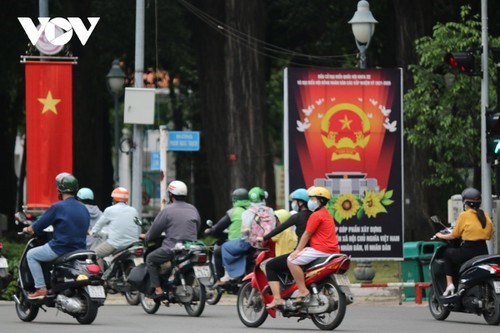 VOV5 - (VOV5) - Những ngày này, khắp phố phường ở TPHCM đều ngập tràn cờ hoa, pa-nô, áp phích rực rỡ với những khẩu hiệu hướng về ngày bầu cử đại biểu Quốc hội và HĐND...