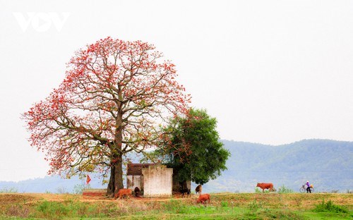 VOV5 - (VOV5) -Cứ mỗi độ tháng 3, cây hoa gạo song sinh bên bờ sông Thương (Thôn Tân Mỹ, xã Lãng Sơn, huyện Yên Dũng, tỉnh Bắc Giang) lại khoe sắc, thu hút đông đảo mọi...