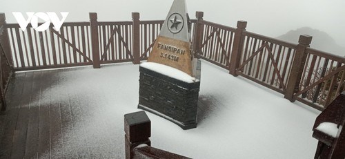 VOV5 - (VOV5) -Khoảng 8h sáng nay 8/2 (tức 27 tháng Chạp), mưa tuyết bất ngờ xuất hiện trên đỉnh Fansipan, thị xã Sa Pa, tỉnh Lào Cai.