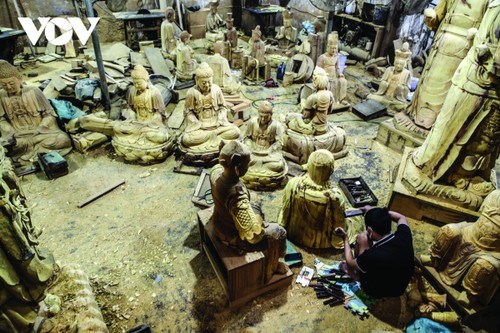 VOV5 - (VOV5) - Làng Sơn Đồng (xã Sơn Đồng, huyện Hoài Đức, Hà Nội) nổi tiếng với nghề tạc tượng Phật, tượng Mẫu, điêu khắc gỗ truyền thống và sản xuất đồ thờ cúng mỹ nghệ