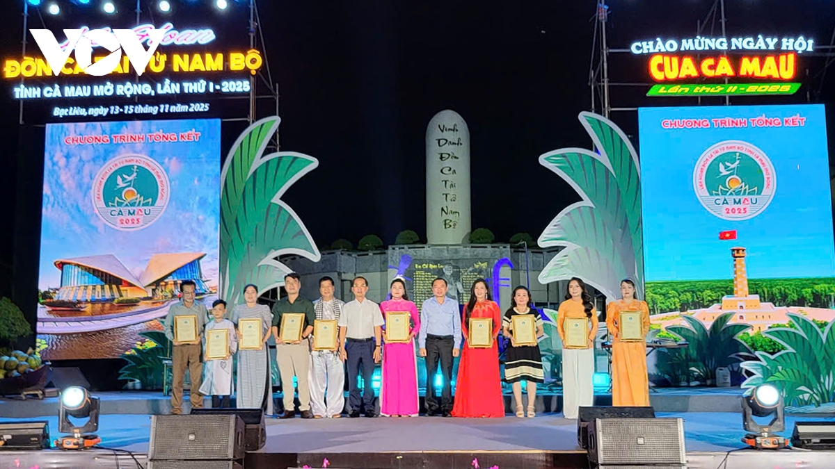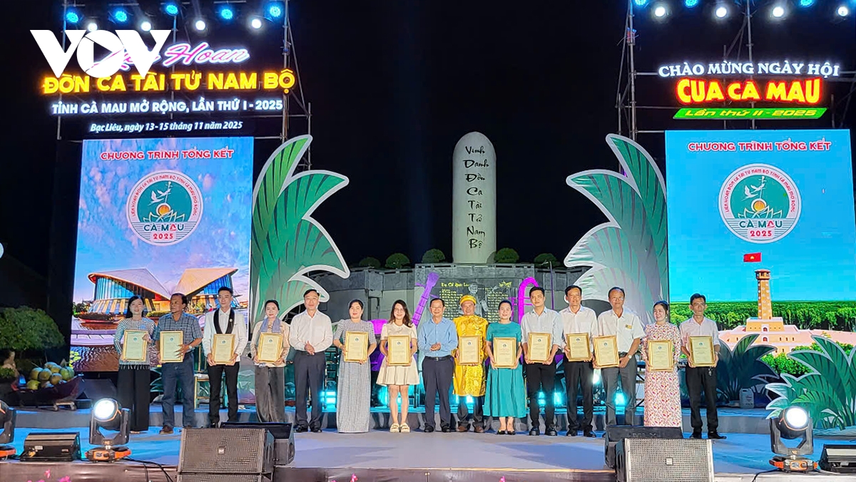 VOV.VN - Sau 3 ngày diễn ra, tối nay 15/11, tại Khu lưu niệm nghệ thuật Đờn ca tài tử Nam bộ và nhạc sĩ Cao Văn Lầu (phường Bạc Liêu), Ban tổ chức đã tổng kết và trao giải Liên hoan nghệ thuật Đờn ca tài tử Nam bộ tỉnh Cà Mau mở rộng lần thứ I năm 2025 với chủ đề “Ngân vang giai điệu phương Nam”.