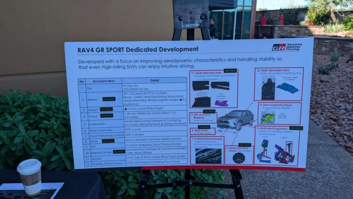 Lốp xe rộng hơn, hệ thống treo được tinh chỉnh lại và khung gầm cứng cáp hơn tạo nên một chiếc crossover sắc sảo hơn hẳn. So với các phiên bản RAV4 khác, GR Sport khó bị bỏ qua nhất vì nó mang lại cảm giác lái phấn khích hơn hẳn trên đường so với bất kỳ phiên bản nào khác. Toyota có một chế độ lái trợ lực đặc biệt dành cho GR Sport khi xe ở chế độ thể thao. Điều này cải thiện cảm giác lái, một điều tuyệt vời, nhưng điều đáng nói là chiếc crossover này có những bộ phận tăng cường hiệu suất độc đáo.