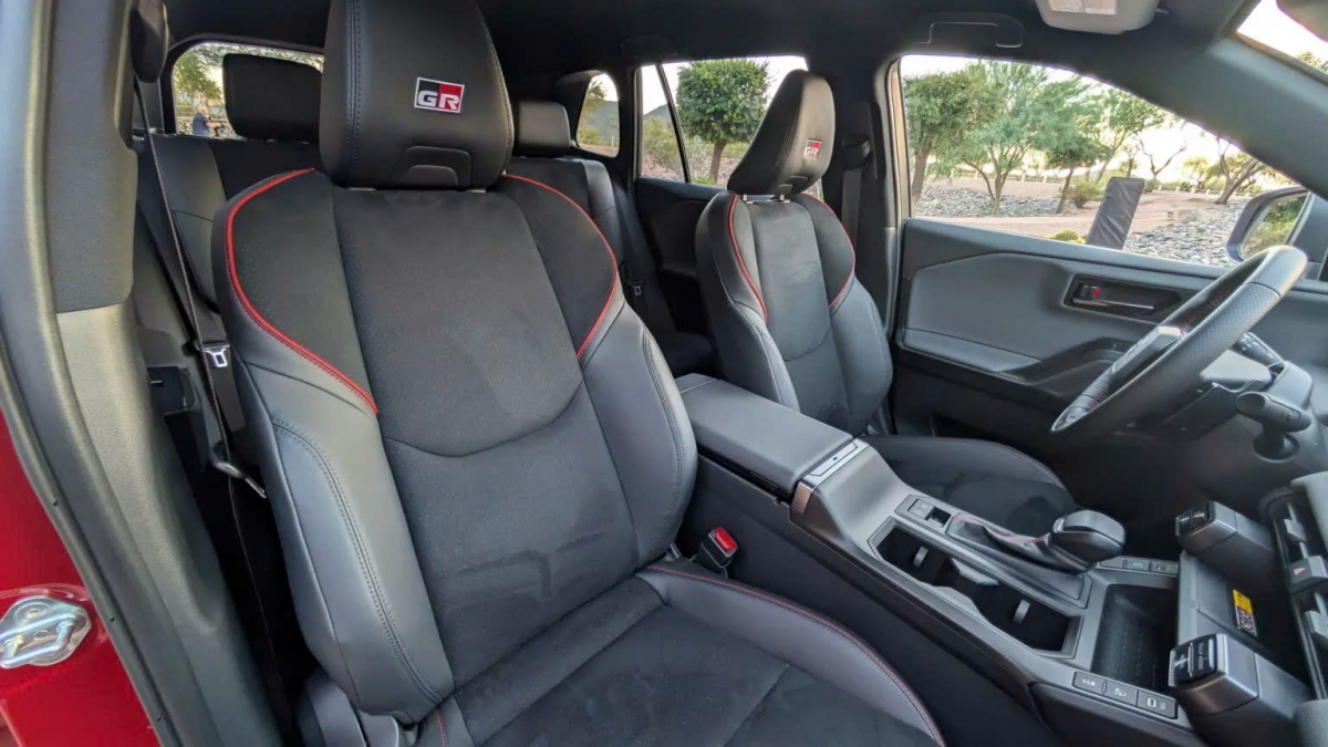 Đường viền màu đỏ làm nổi bật lưng ghế, và logo GR trang trí trên tựa đầu. Ghế ngồi thoải mái, dễ điều chỉnh và hỗ trợ tốt cho những chuyến đi dài. Bảng điều khiển đơn giản, đầy đủ nút bấm vật lý, gợi nhớ đến 4Runner và Tacoma mới. Màn hình trung tâm lớn (tới 12,9 inch) và màn đồng hồ kỹ thuật số 12,3 inch. Phía sau hàng ghế sau, khoang chứa đồ rộng 33,5 feet khối, có thể mở rộng lên 63,5 feet khối khi gập hàng ghế xuống.