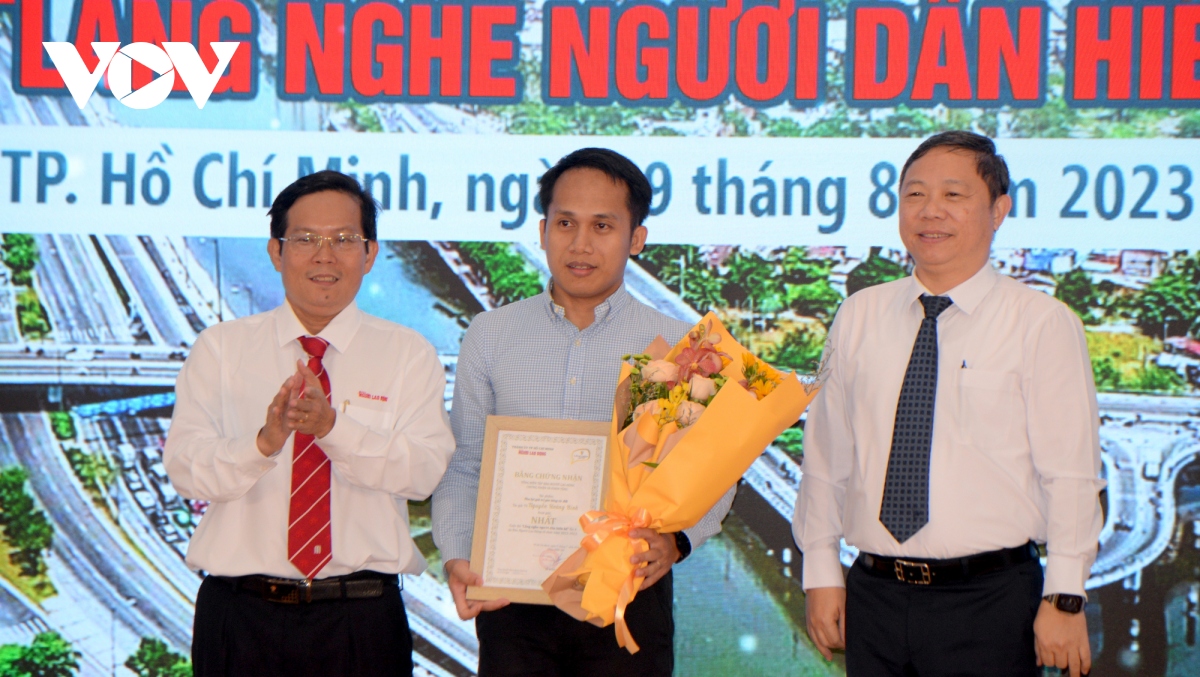 VOV.VN - Phát biểu tại lễ trao giải cuộc thi "Lắng nghe người dân hiến kế" lần 4 – 2023 do báo Người Lao động tổ chức sáng nay (29/8), lãnh đạo UBND TP.HCM cho biết, TP sẽ đánh giá tất cả công sức đóng góp, các ý tưởng đóng góp cho sự phát triển của TP và có hình thức khen thưởng, khuyến khích phù hợp.