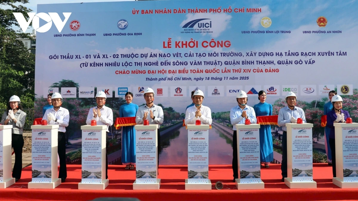 VOV.VN - Sáng 18/11, Ban Quản lý dự án đầu tư xây dựng hạ tầng đô thị TP.HCM cùng Trungnam E&C và các nhà thầu khác tổ chức lễ khởi công hai gói thầu XL-01 và XL-02 của dự án cải tạo rạch Xuyên Tâm gần 9 km. Công trình được kỳ vọng giảm ngập, cải thiện môi trường và tạo trục cảnh quan – giao thông mới.