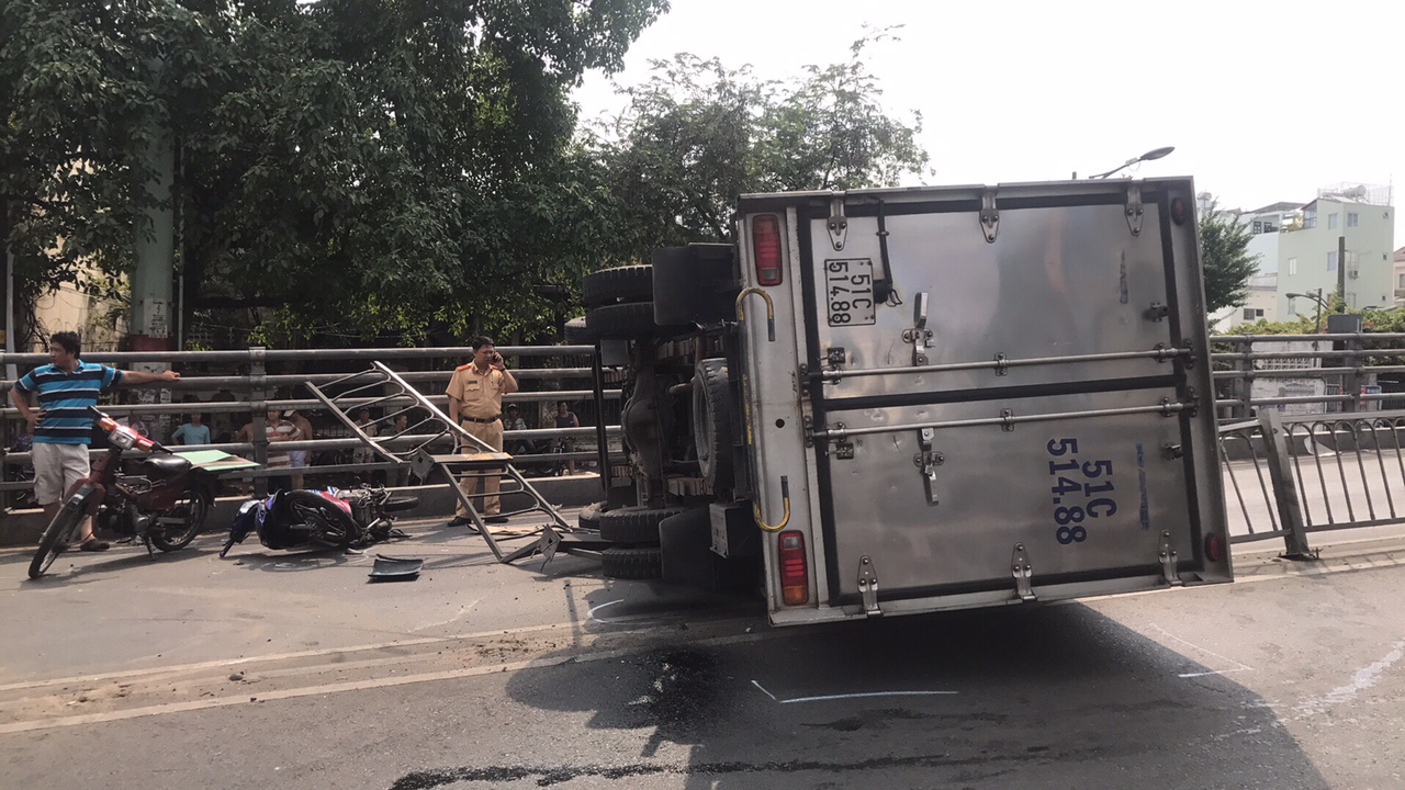 Thông tin ban đầu khoảng 13h00, xe tải mang BKS 51C -514.88 lưu thông trên đường Hồng Bàng, quận 5 hướng lên cầu vượt Cây Gõ về bến xe Miền Tây, quận 6, thành phố Hồ Chí Minh. Khi chiếc xe vừa lên cầu được khoảng 100m thì bất ngờ mất lái, chao đảo đâm vào dải phân cách va chạm tiếp với 2 xe máy lưu thông ở chiều ngược lại rồi lật ngang giữa đường.