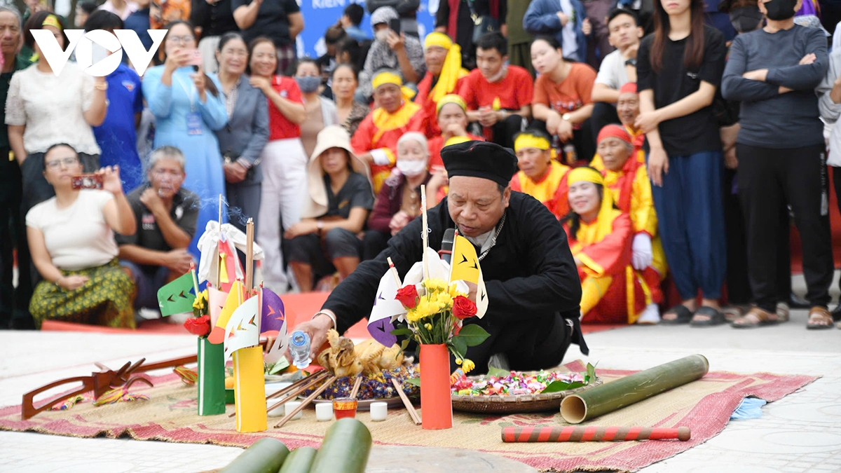 Nghi lễ cúng thần linh trước khi kéo co của người Tày ở Trung Đô, Lào Cai.