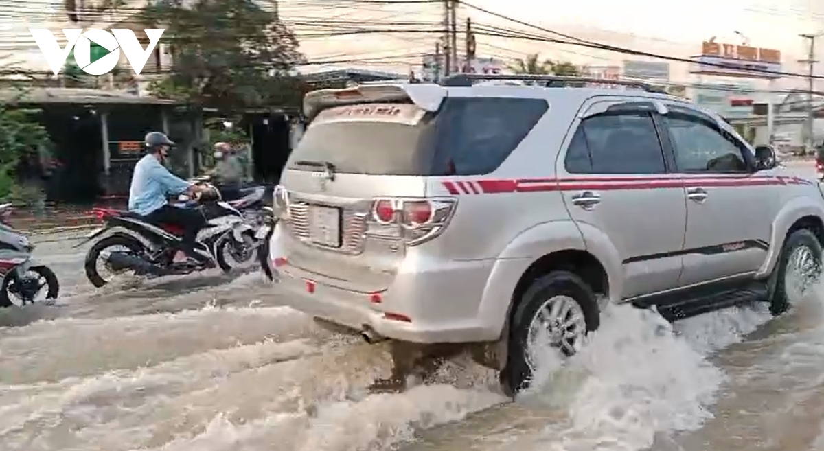 Không chỉ ở Bình Minh, tại phường Long Châu – nơi tập trung các tuyến đường chính như Lê Thái Tổ, Hưng Đạo Vương, Nguyễn Huệ, Phó Cơ Điều, Hoàng Thái Hiếu, Xóm Chài – nước triều cũng tràn ngập nhiều đoạn đường, gây ảnh hưởng đến sinh hoạt của người dân.