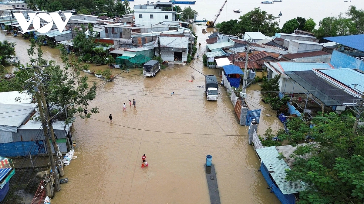 VOV.VN - Đợt triều cường rằm tháng 9 (âm lịch) kết hợp với nước lũ tràn về địa bàn tỉnh Đồng Tháp đang diễn ra vượt mức báo động III gây ngập nước trên diện rộng và ảnh hưởng đến sinh hoạt, gây thiệt hại sản xuất nông nghiệp của nông dân địa phương.