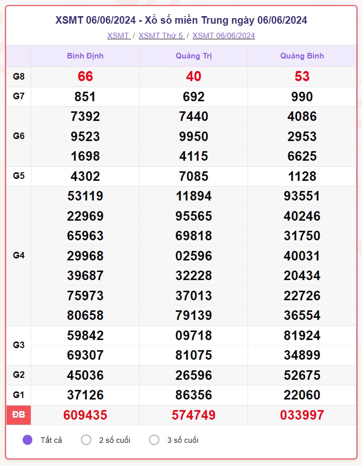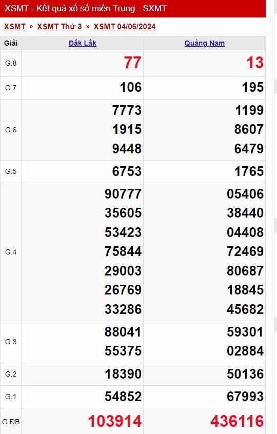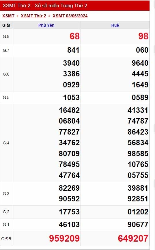 Kết quả xổ số hôm nay XSMT - XSMT 8/6/2024 - KQXSMT - Xổ số miền Bắc ngày 8 tháng 6 - Xổ số miền Trung thứ Bảy.