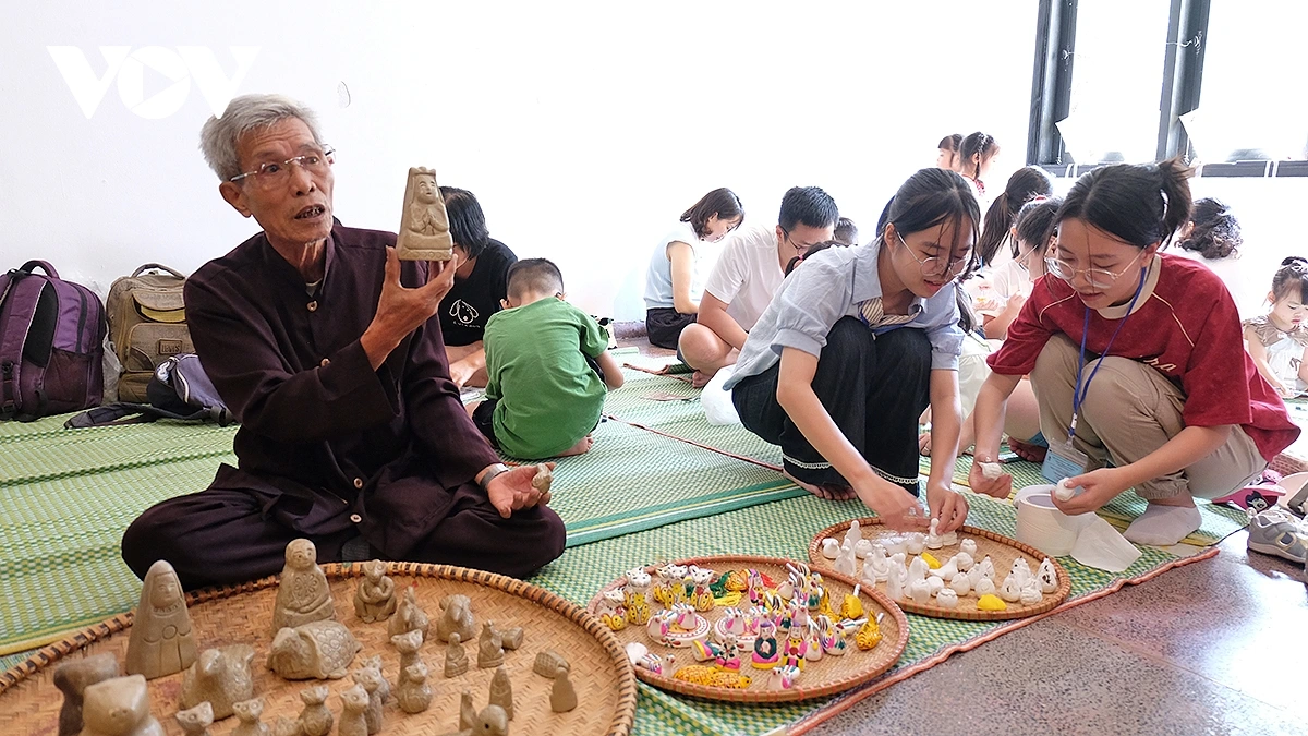 Các nghệ nhân giới thiệu đồ chơi con giống bằng đất sét trong Chương trình “Tết Trung thu 2025 - Vui cùng trẻ thơ” tại Bảo tàng Dân tộc học Việt Nam.