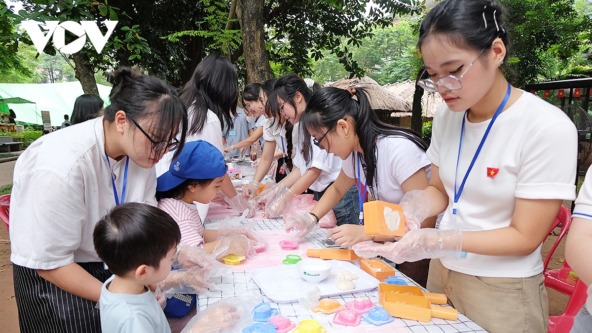 Trải nghiệm làm bánh nướng bánh dẻo trong Chương trình “Tết Trung thu 2025 - Vui cùng trẻ thơ” tại Bảo tàng Dân tộc học Việt Nam.