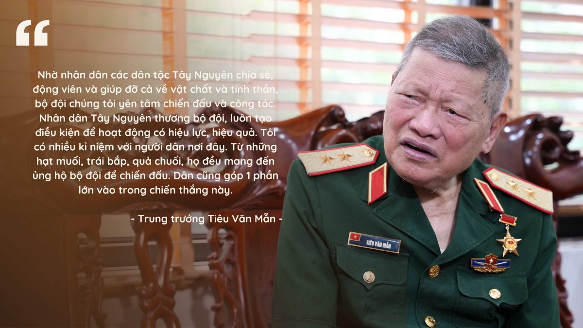 “Nhờ nhân dân các dân tộc Tây Nguyên chia sẻ, động viên và giúp đỡ cả về vật chất và tinh thần, bộ đội chúng tôi yên tâm chiến đấu và công tác. Nhân dân Tây Nguyên thương bộ đội, luôn tạo điều kiện để hoạt động có hiệu lực, hiệu quả. Tôi có nhiều kỉ niệm với người dân nơi đây. Từ những hạt muối, trái bắp, quả chuối, họ đều mang đến ủng hộ bộ đội để chiến đấu. Dân cũng góp 1 phần lớn vào trong chiến thắng này.”