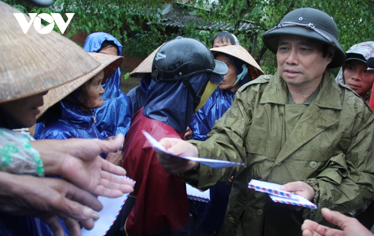 “Cố gắng bám sát địa bàn, đôn đốc, kiểm tra và thăm hỏi bà con thật sự chu đáo. Không để bà con đói, rét, không để thiếu nước sạch vì thiếu nước sạch thì sau lũ lại bị bệnh tật rất là nguy hiểm. Khi nước rút, bão lũ hết thì phải tập trung ổn định tình hình, vệ sinh môi trường, lo cho bà con nước sạch và thực hiện các biện pháp cho môi trường sạch sẽ”, Trưởng Ban Tổ chức Trung ương Phạm Minh Chính đề nghị.