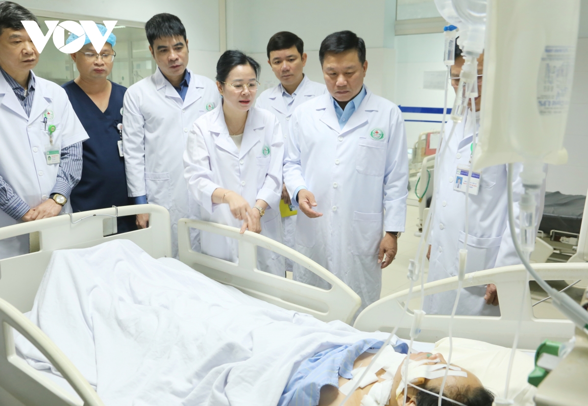 Ông Hà Anh Đức, Cục trưởng Cục Khám chữa bệnh, Bộ Y tế đã trao quà và chuyển lời biểu dương tinh thần quả cảm, lời chúc sức khoẻ của đồng chí Bộ trưởng Bộ Y tế tới các nạn nhân.