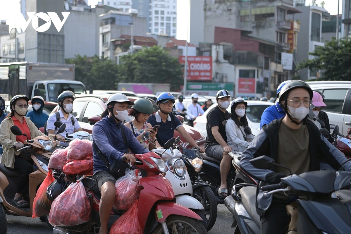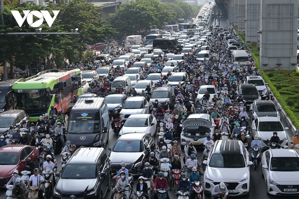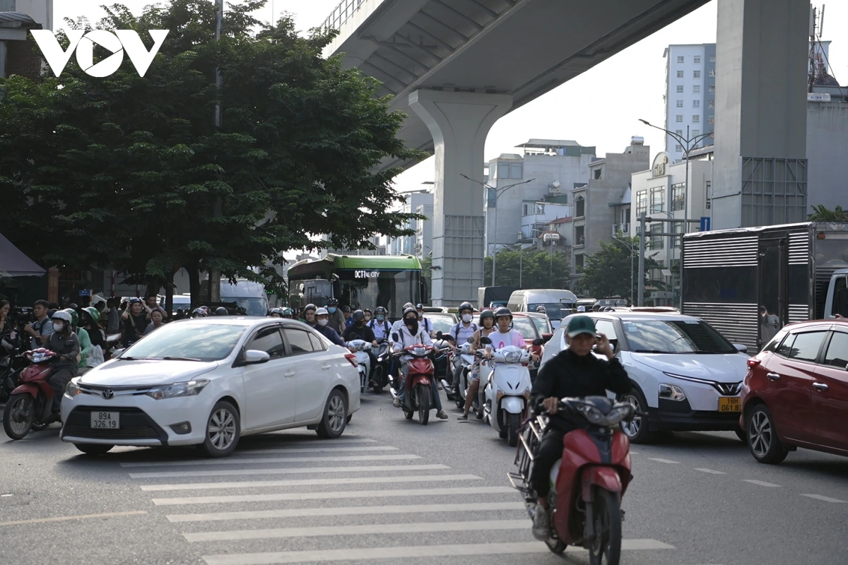 Phố Vọng đông đúc sáng sớm - dòng xe ken đặc, tiếng còi inh ỏi.