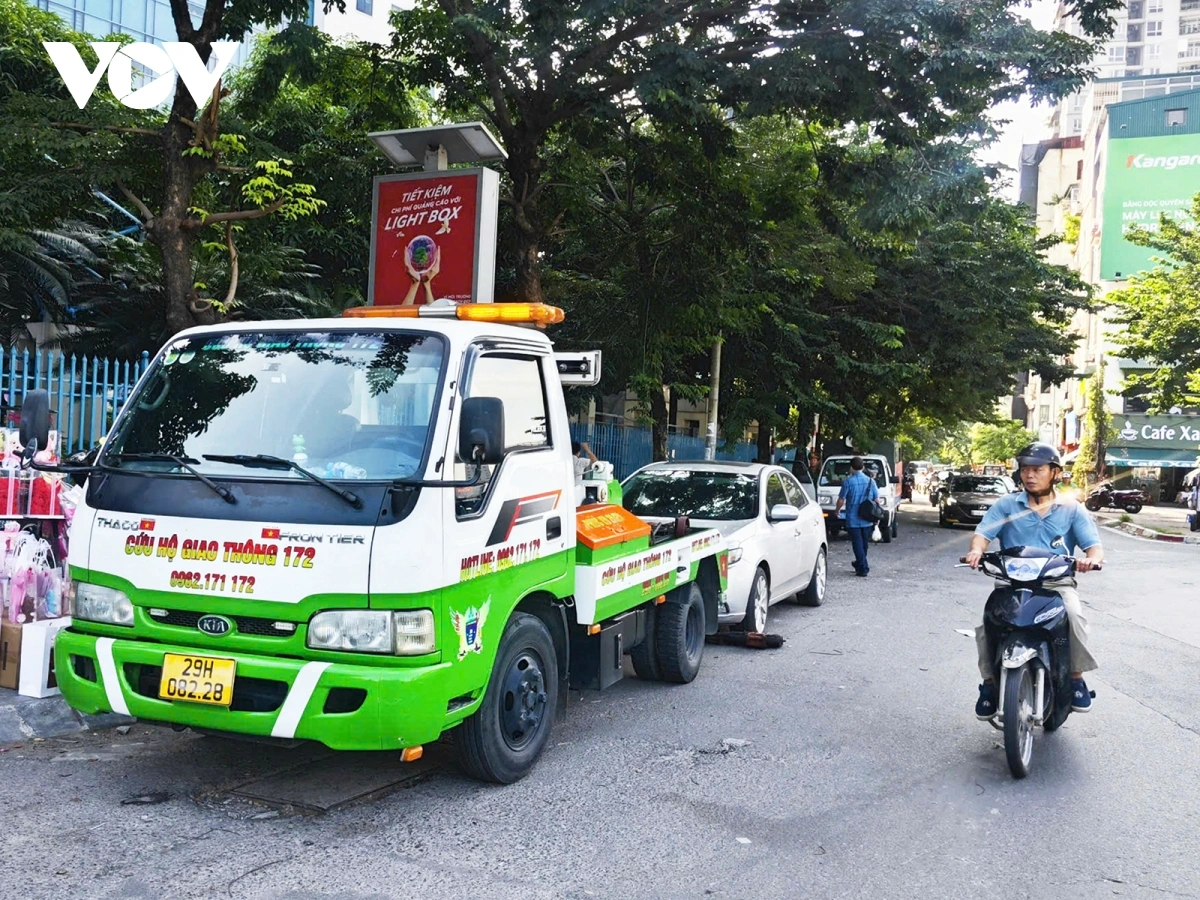Cảnh sát xử lý xe vi phạm dừng, đỗ.