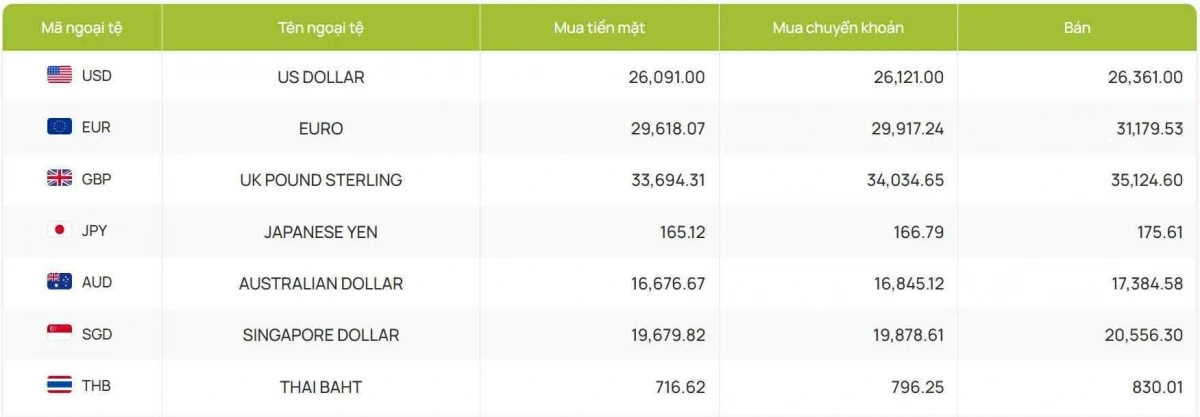 Cụ thể, ngân hàng Vietcombank công bố giao dịch ở mốc 26.091 - 26.361 đồng/USD (mua vào và bán ra), cao hơn phiên trước 3 đồng cả hai chiều.