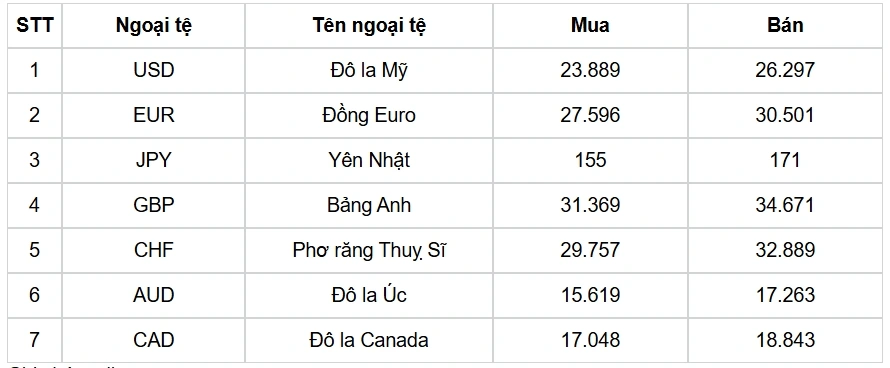 Tỷ giá tham khảo giữa đồng Việt Nam và các loại ngoại tệ tại Cục Quản lý dự trữ ngoại hối nhà nước như sau:
