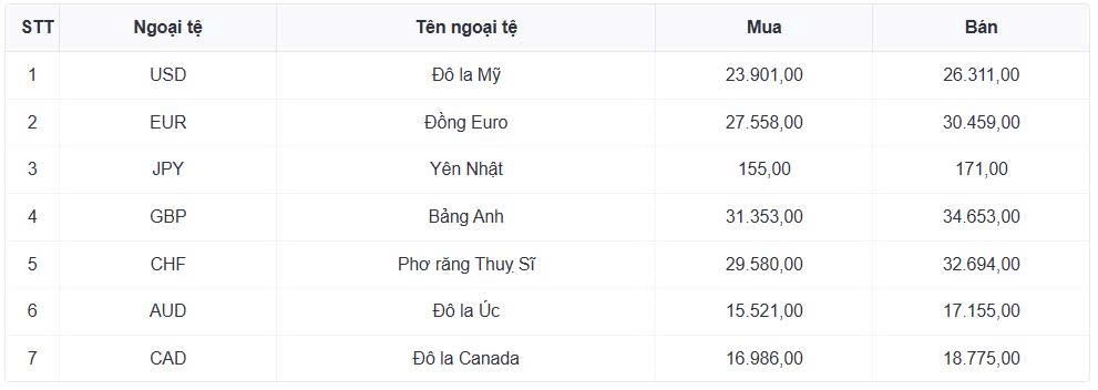 Tỷ giá các ngoại tệ mạnh khác trong giỏ thanh toán quốc tế, tại Ngân hàng Vietcombank được niêm yết như sau: