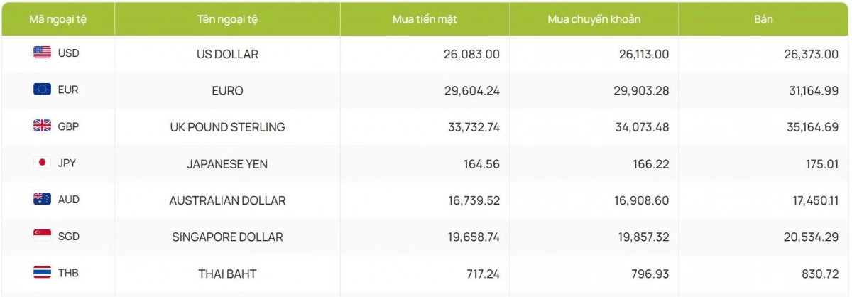Cụ thể, ngân hàng Vietcombank sáng nay tăng 12 đồng cả hai chiều, công bố giao dịch ở mốc 26.083 - 26.373 đồng/USD (mua vào và bán ra).