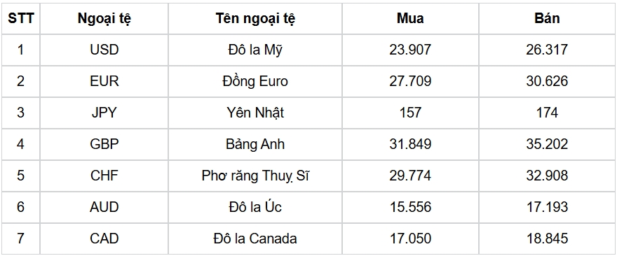Tỷ giá các ngoại tệ mạnh khác trong giỏ thanh toán quốc tế, tại Ngân hàng Vietcombank được niêm yết như sau: