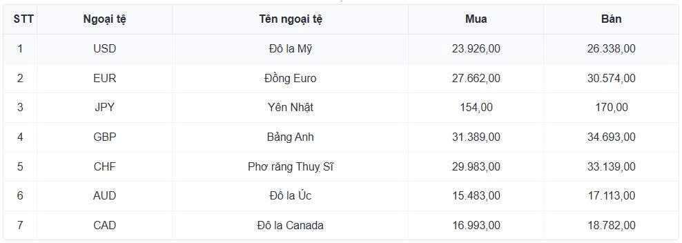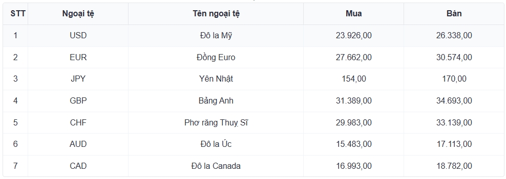Tỷ giá các ngoại tệ mạnh khác trong giỏ thanh toán quốc tế, tại Ngân hàng Vietcombank được niêm yết như sau:
