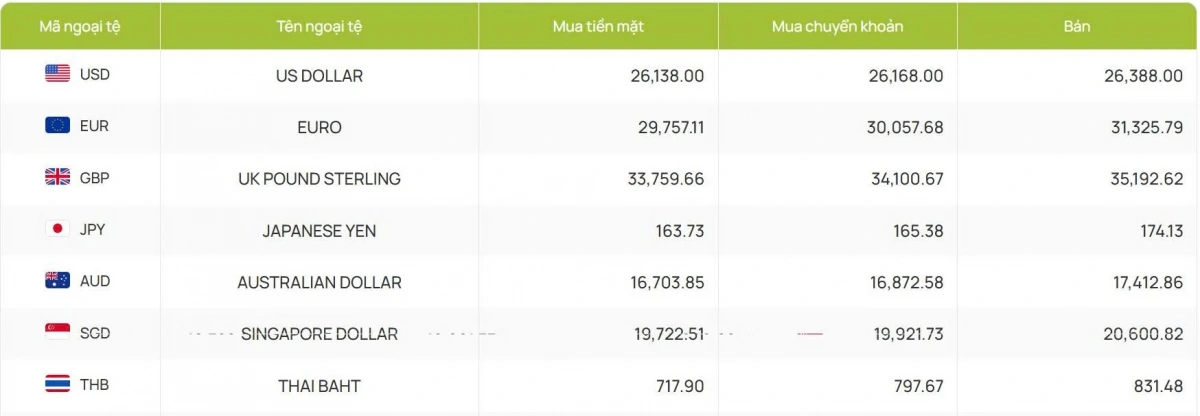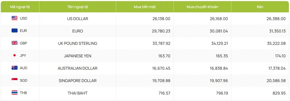 Còn ACB hiện giao dịch với 26.170 đồng/USD mua vào và 26.388 đồng/USD bán ra, bằng mức giao dịch của phiên liền trước.