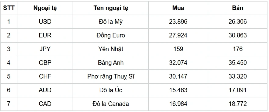 Tỷ giá các ngoại tệ mạnh khác trong giỏ thanh toán quốc tế, tại Ngân hàng Vietcombank được niêm yết như sau: