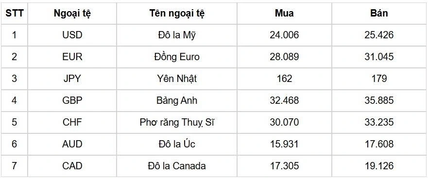 Tỷ giá các ngoại tệ mạnh khác trong giỏ thanh toán quốc tế, tại Ngân hàng Vietcombank được niêm yết như sau: