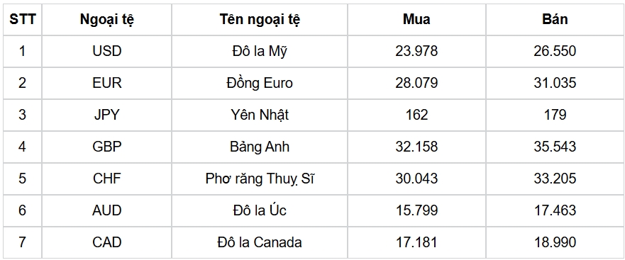 Tỷ giá tham khảo giữa đồng Việt Nam và các loại ngoại tệ tại Cục Quản lý dự trữ ngoại hối nhà nước như sau: