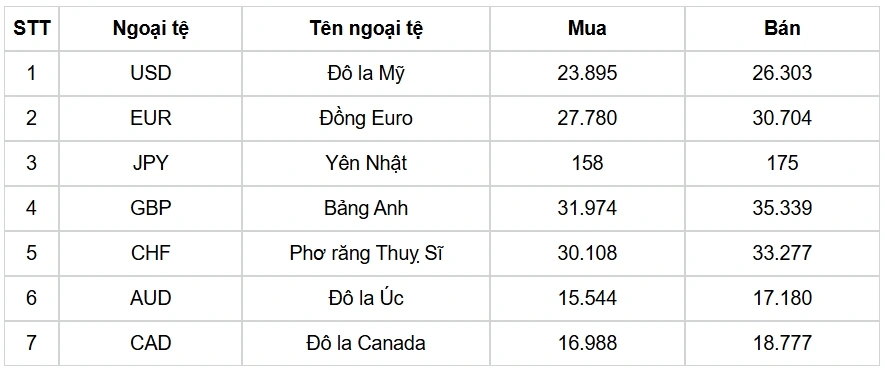 Tỷ giá tham khảo giữa đồng Việt Nam và các loại ngoại tệ tại Cục Quản lý dự trữ ngoại hối nhà nước như sau: