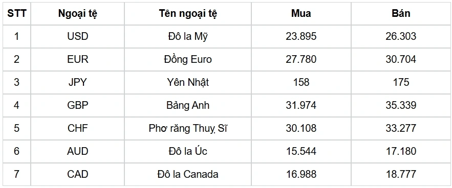 Tỷ giá các ngoại tệ mạnh khác trong giỏ thanh toán quốc tế, tại Ngân hàng Vietcombank được niêm yết như sau: