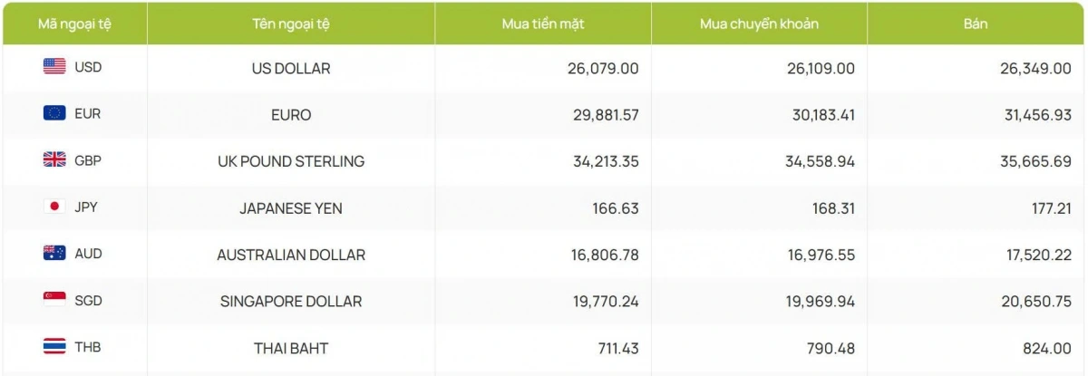 Tại ACB sáng nay thứ Ba không thay đổi giá mua còn giá bán đã giảm 2 đồng kể từ phiên trước, hiện giao dịch với 26.090 đồng/USD mua vào và 26.349 đồng/USD bán ra.