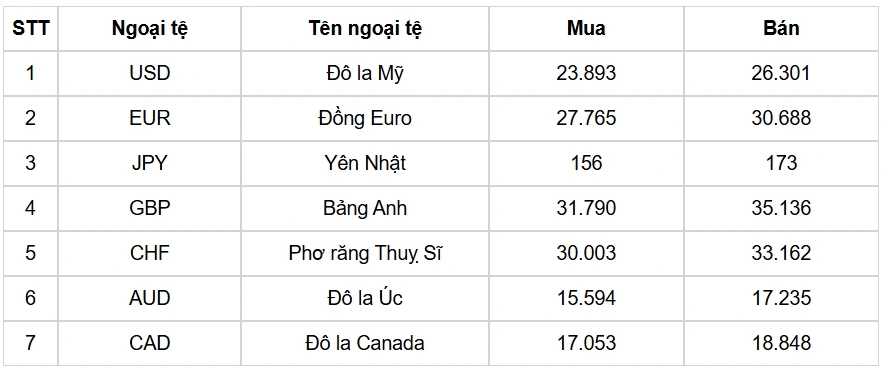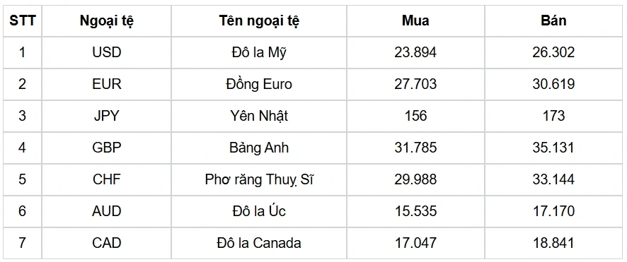 Tỷ giá các ngoại tệ mạnh khác trong giỏ thanh toán quốc tế, tại Ngân hàng Vietcombank được niêm yết như sau: